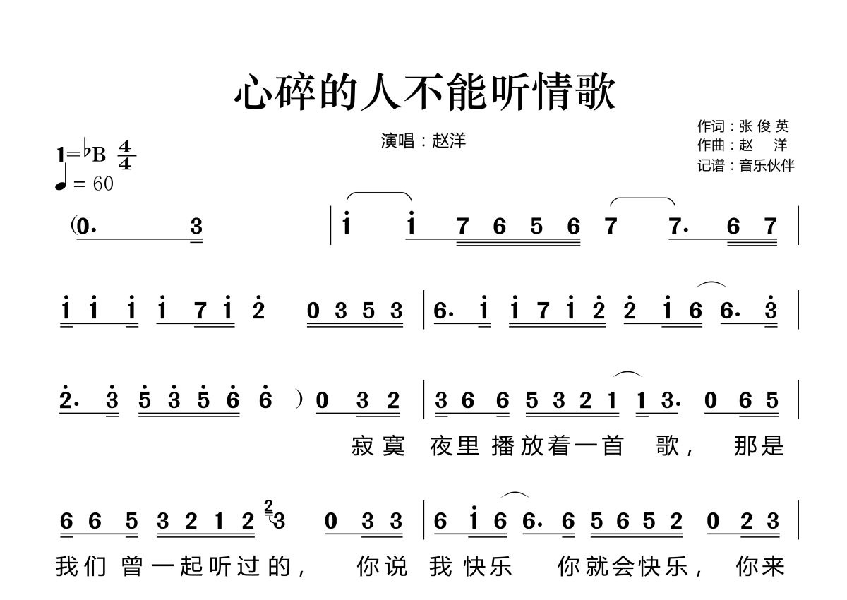 心碎的人不能听情歌简谱 - 赵洋演唱