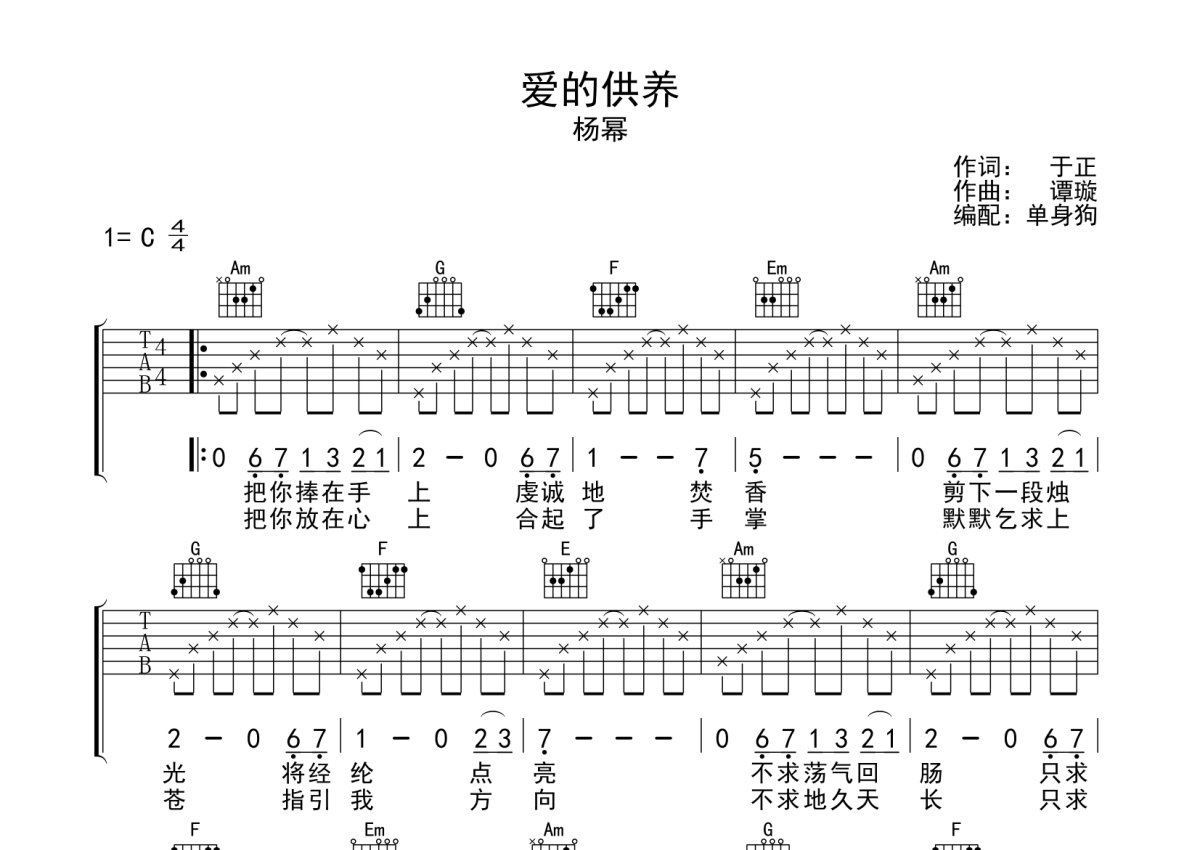 杨幂《爱的供养》吉他谱 - C调弹唱六线谱