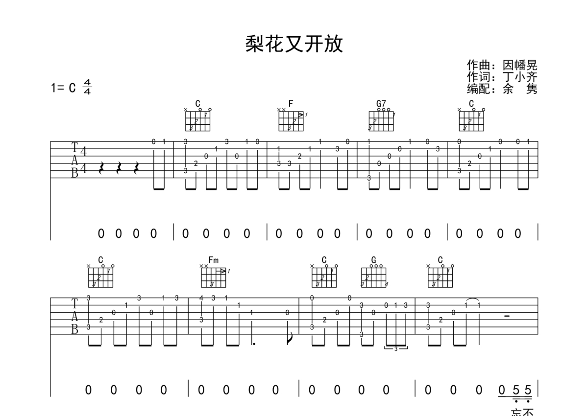 韩红《梨花又开放》吉他谱 - C调弹唱六线谱