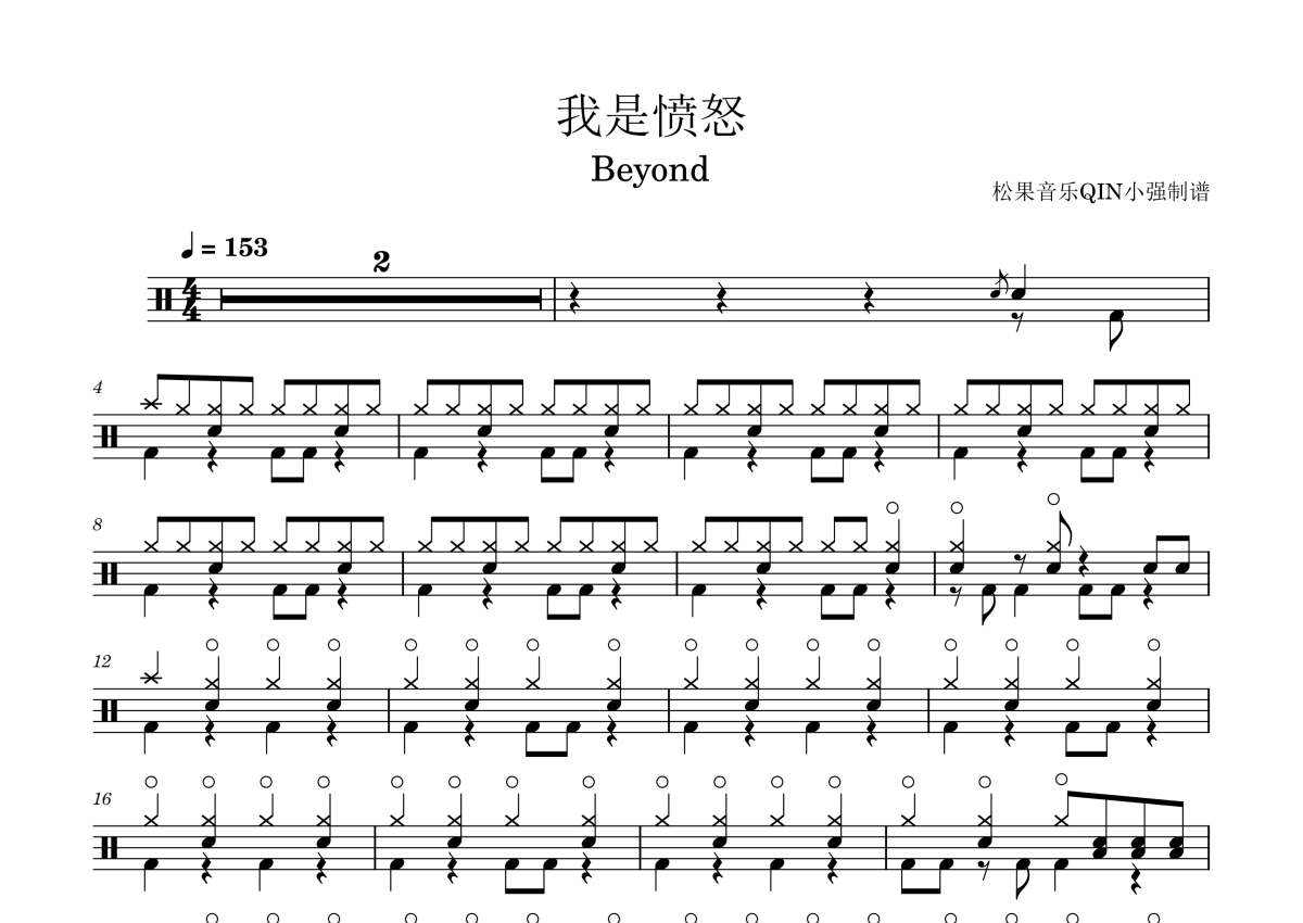 《我是愤怒》是Beyond演唱的一首歌曲,拍号为4/4拍,这份架子鼓谱共有四张高清图谱,图谱由 @松果音乐QIN小强 编配上传,图谱使用五线谱编配,使用这份我是愤怒架子鼓谱,你将能够轻松地敲打出这首Beyond的我是愤怒,快来尝试吧。《我是愤怒》是中国香港摇滚乐队Beyond演唱的粤语歌曲,由黄贯中作词,黄家驹作曲,Beyond、梁邦彦共同编曲 ,收录在Beyond1993年5月14日由华纳唱片发行的粤语专辑《乐与怒》中 。这首歌同时也是1994年香港黑社会经典电影《醉生梦死之湾仔之虎》的插曲。