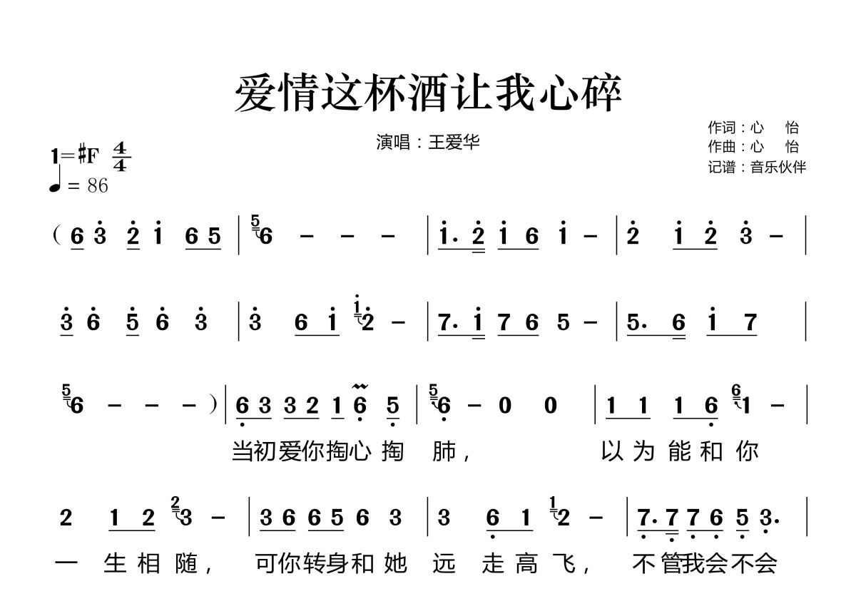 爱情这杯酒让我心碎简谱 - 王爱华演唱