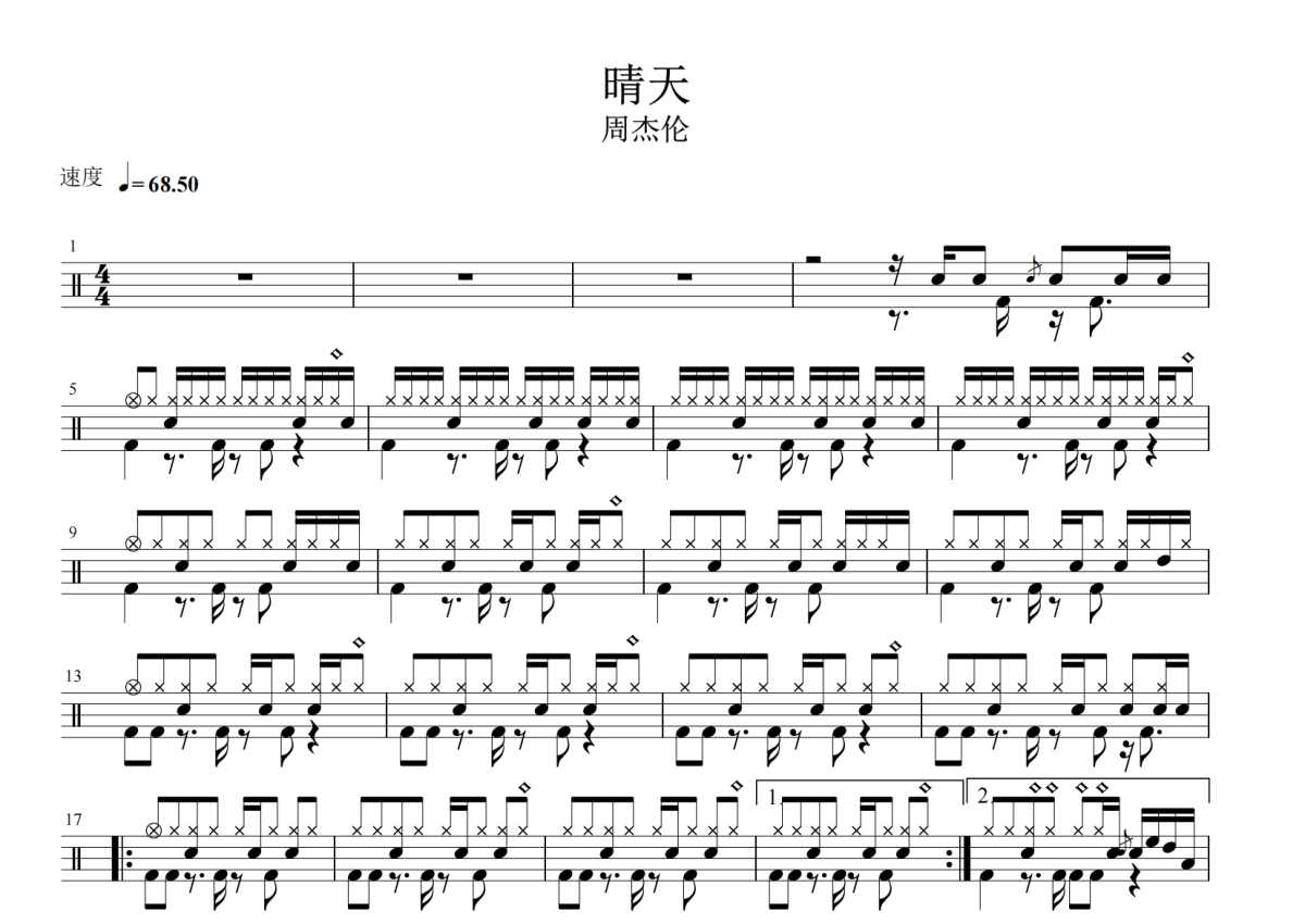 《晴天》架子鼓谱 - 周杰伦