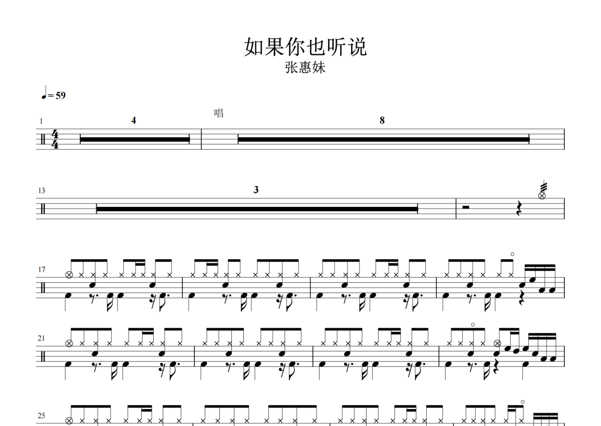 张惠妹《如果你也听说》架子鼓谱