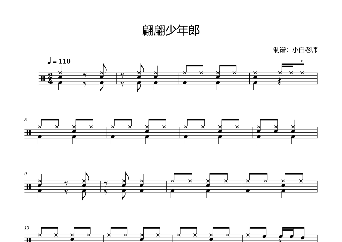 经典教材曲目《翩翩少年郎》架子鼓谱