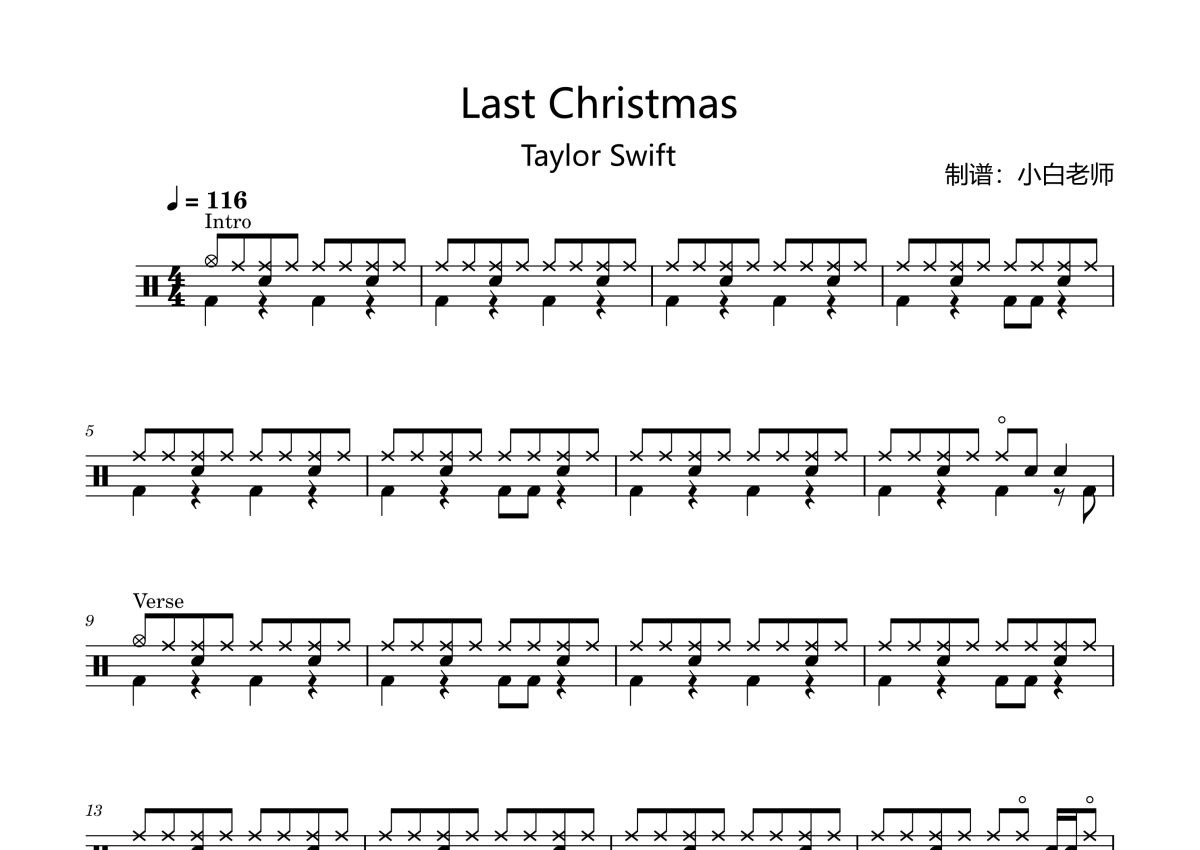 Taylor Swift《Last Christmas》架子鼓谱