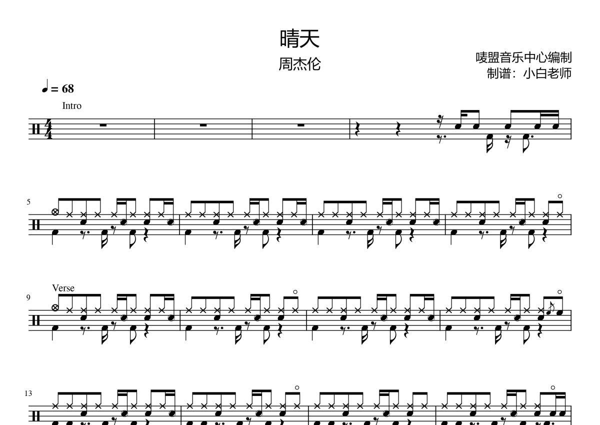 晴天架子鼓谱 - 周杰伦琴魂用户_227975编配