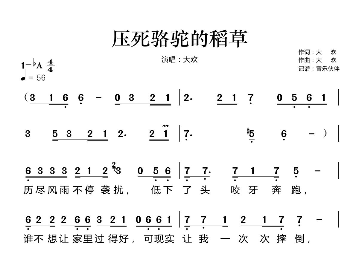 压死骆驼的稻草简谱 - 大欢演唱