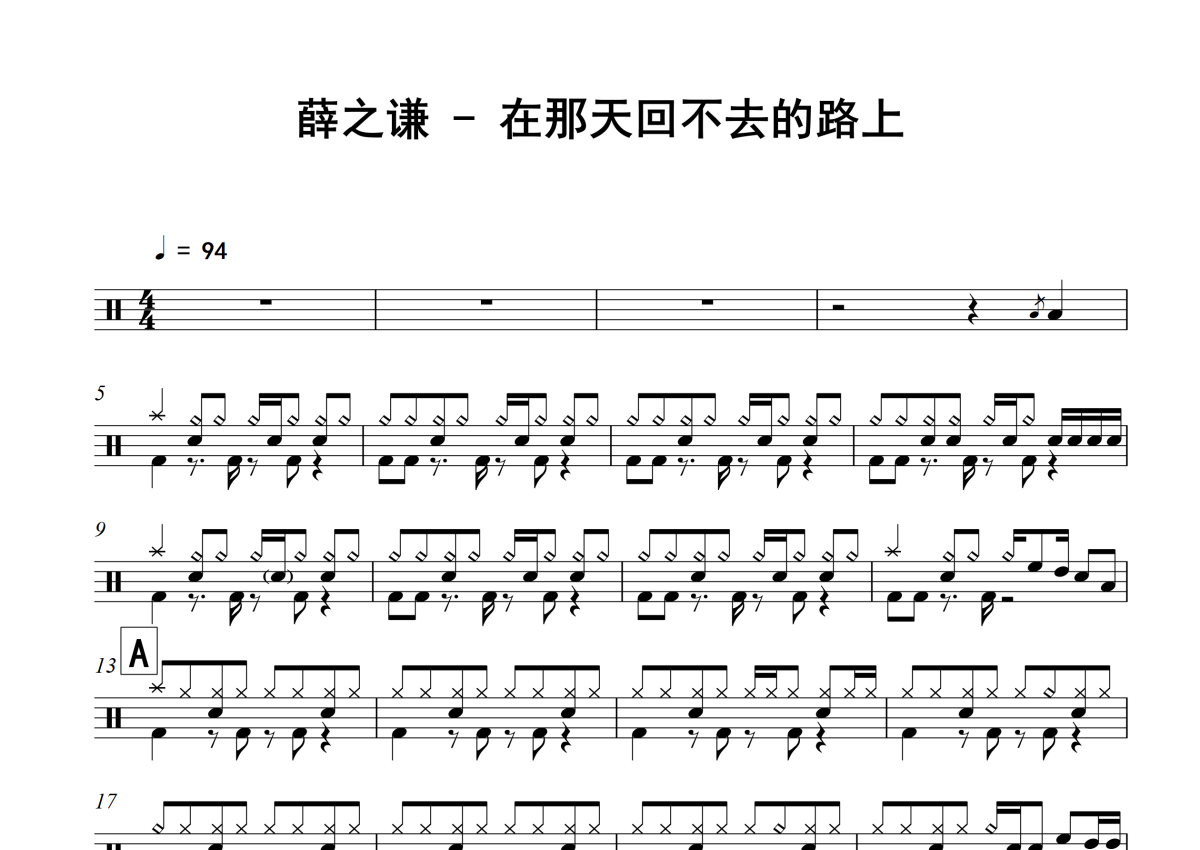 薛之谦《在那天回不去的路上》架子鼓谱