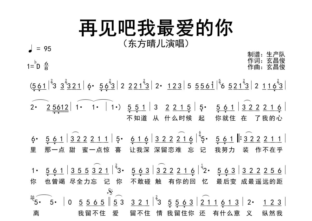 东方晴儿《再见吧我最爱的你》简谱 - 原版简谱