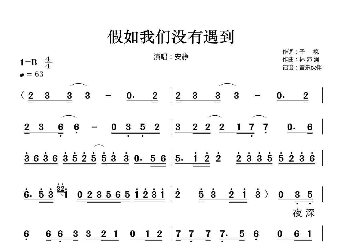 《假如我们没有遇到》是安静演唱的一首歌曲,这份简谱共有两张高清图谱,图谱由 @音乐伙伴 编配上传。