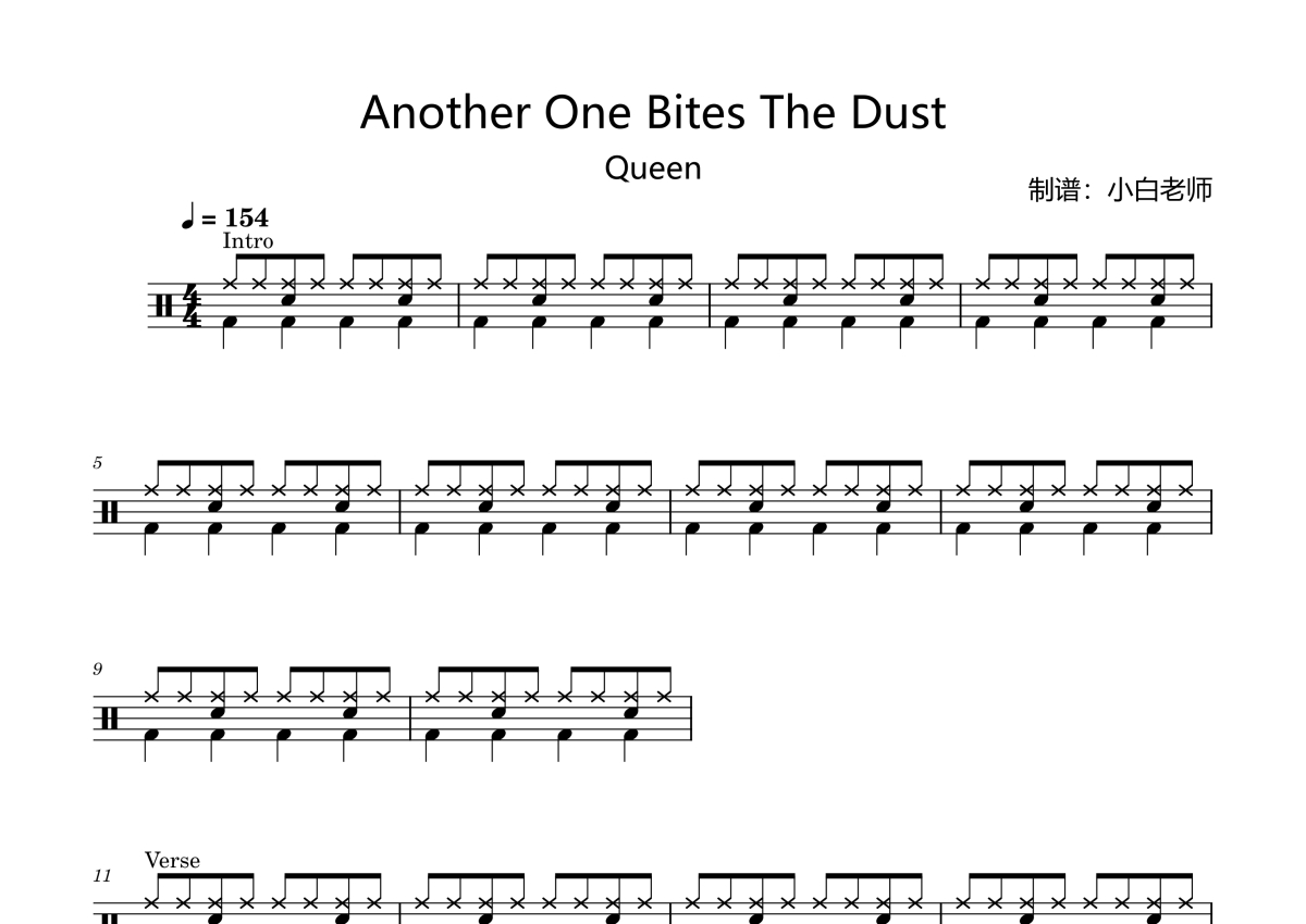 《Another One Bites The Dust》架子鼓谱 - Queen