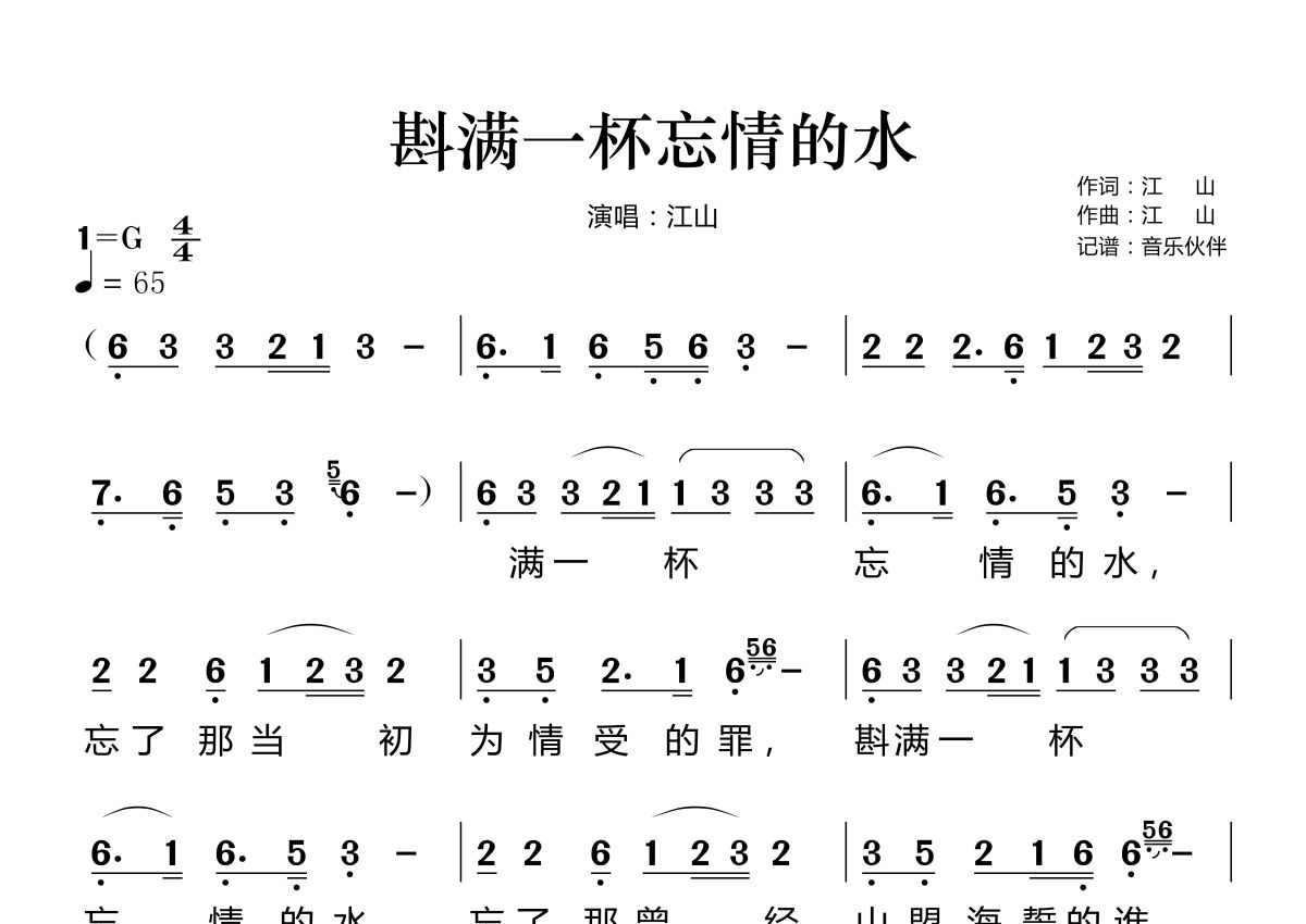 斟满一杯忘情的水简谱 - 江山演唱