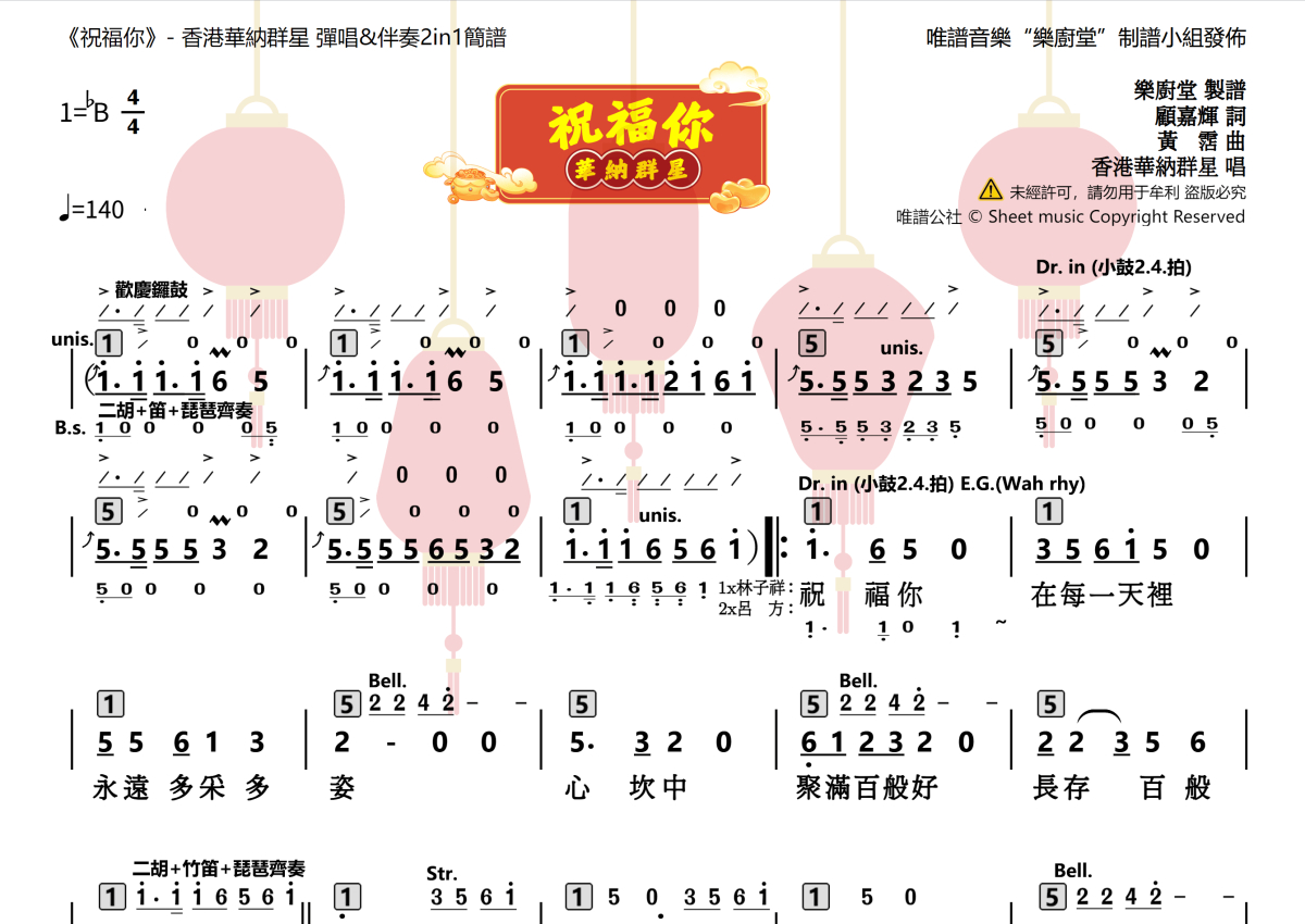 祝福你乐队总谱 - 华纳群星演唱