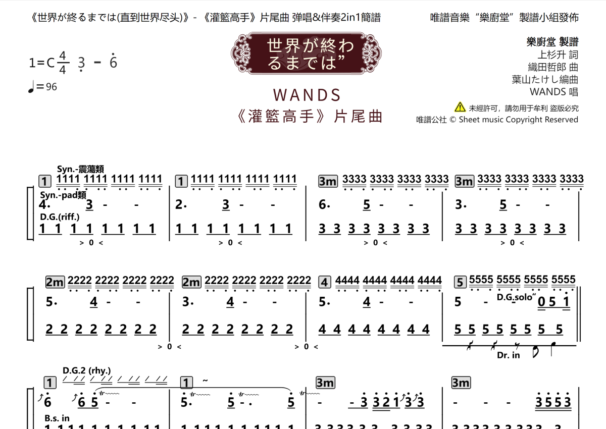 wands《直到世界尽头(注音版)》乐队总谱 - 完整总谱