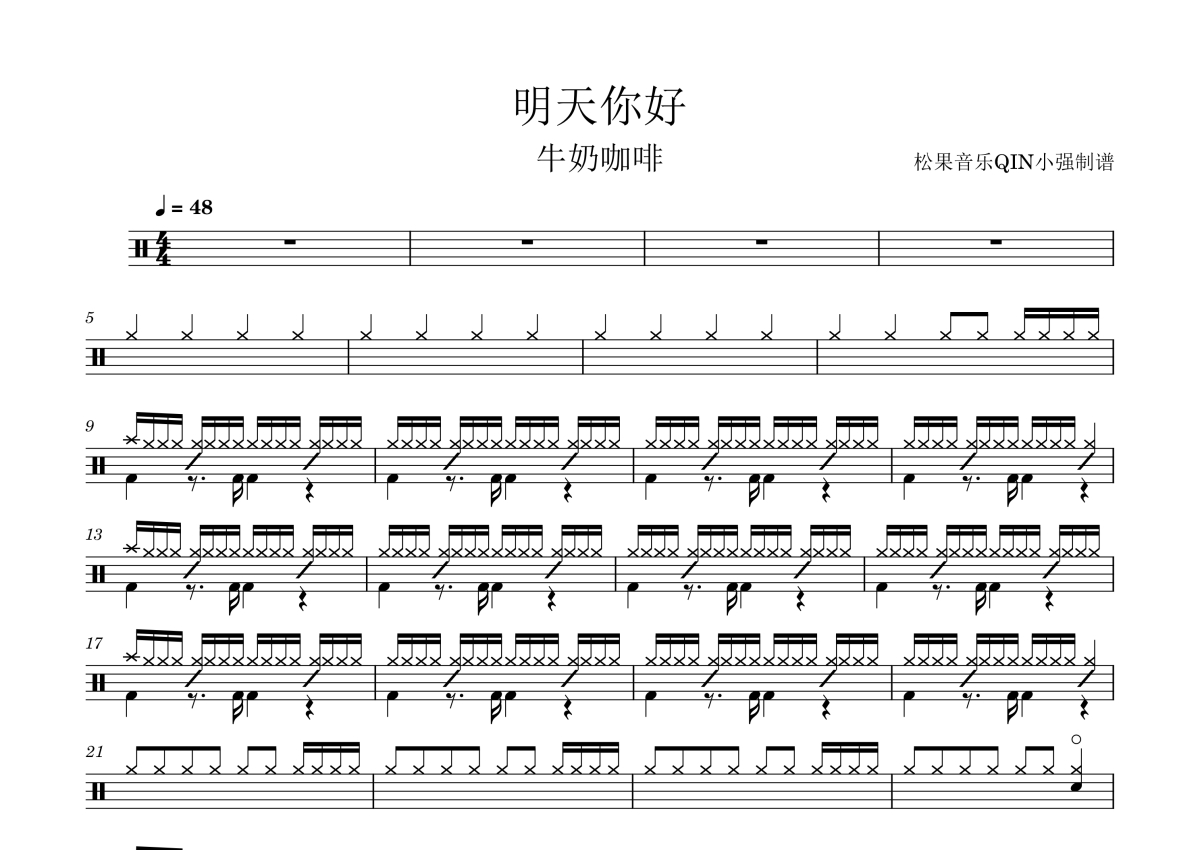 牛奶咖啡《明天你好》架子鼓谱