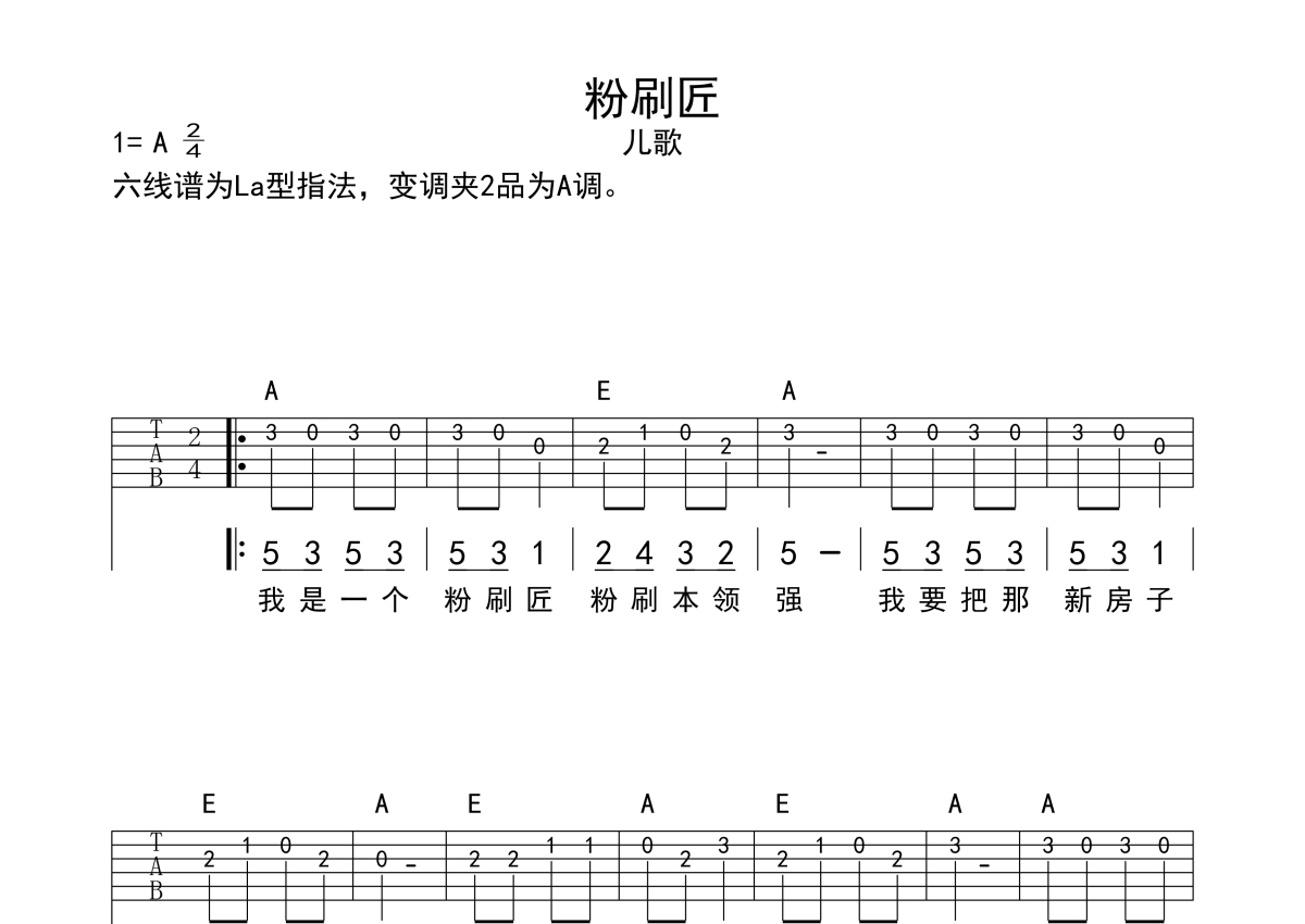 儿歌《粉刷匠》吉他谱 - G调独奏solo六线谱