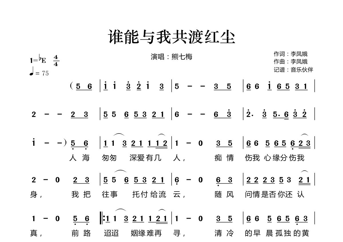 谁能与我共渡红尘简谱 - 熊七梅演唱