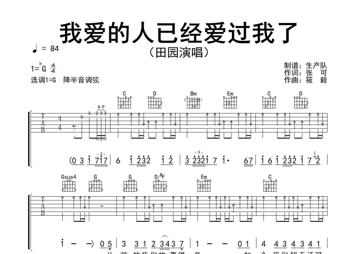 田园《我爱的人已经爱过我了》吉他谱 - G调弹唱六线谱 - 精编完美版