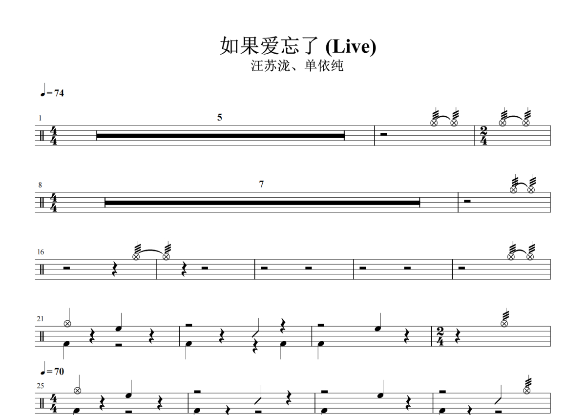 汪苏泷 单依纯《如果爱忘了》架子鼓谱 - Live