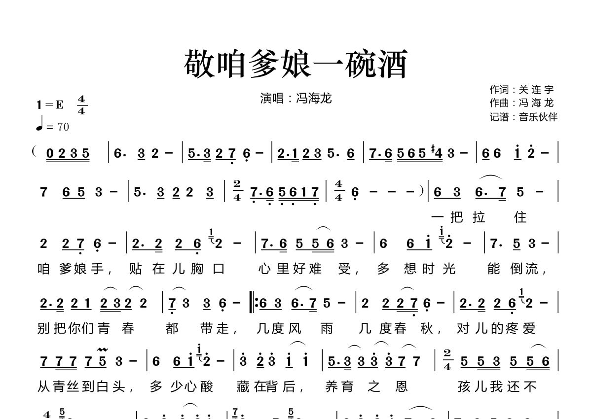 敬咱爹娘一碗酒简谱 - 冯海龙演唱