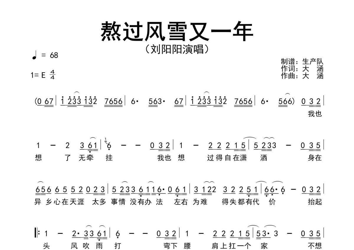 刘阳阳《熬过风雪又一年》简谱 - 原版简谱