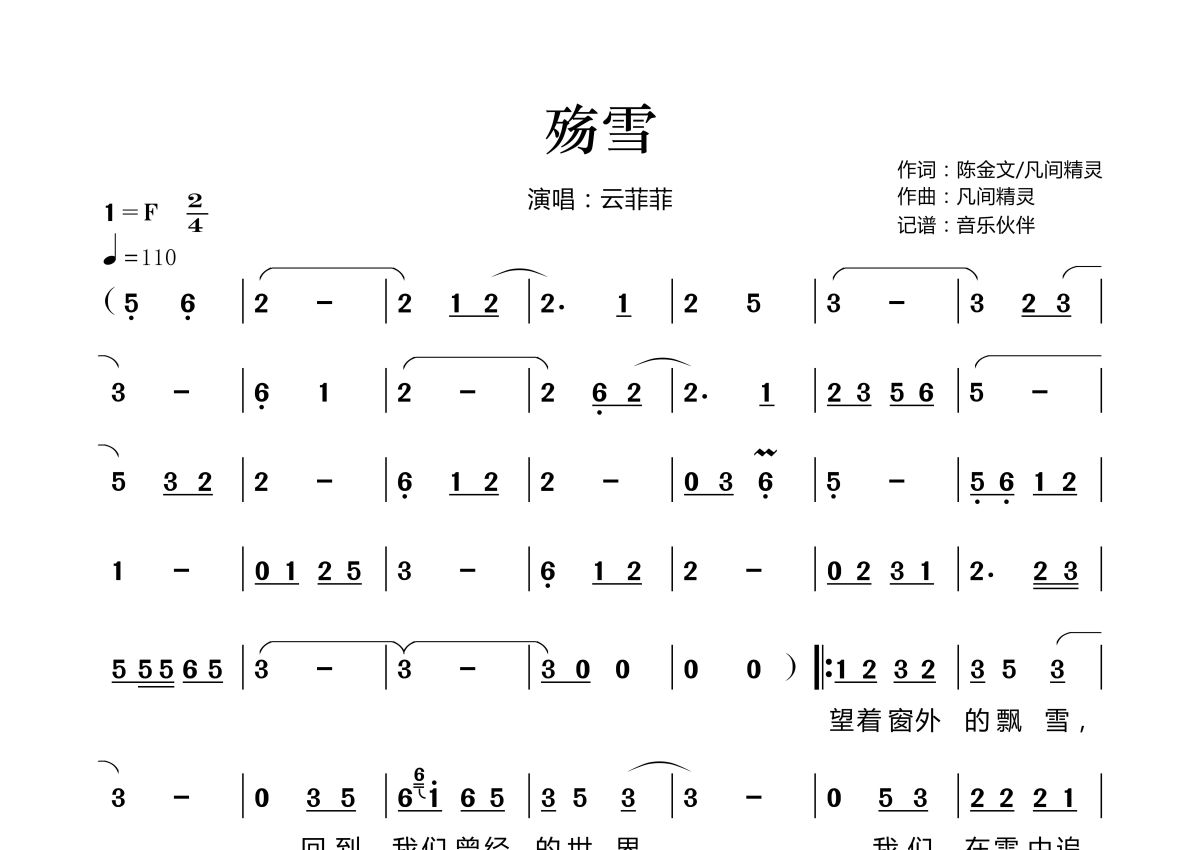 殇雪简谱 - 云菲菲演唱