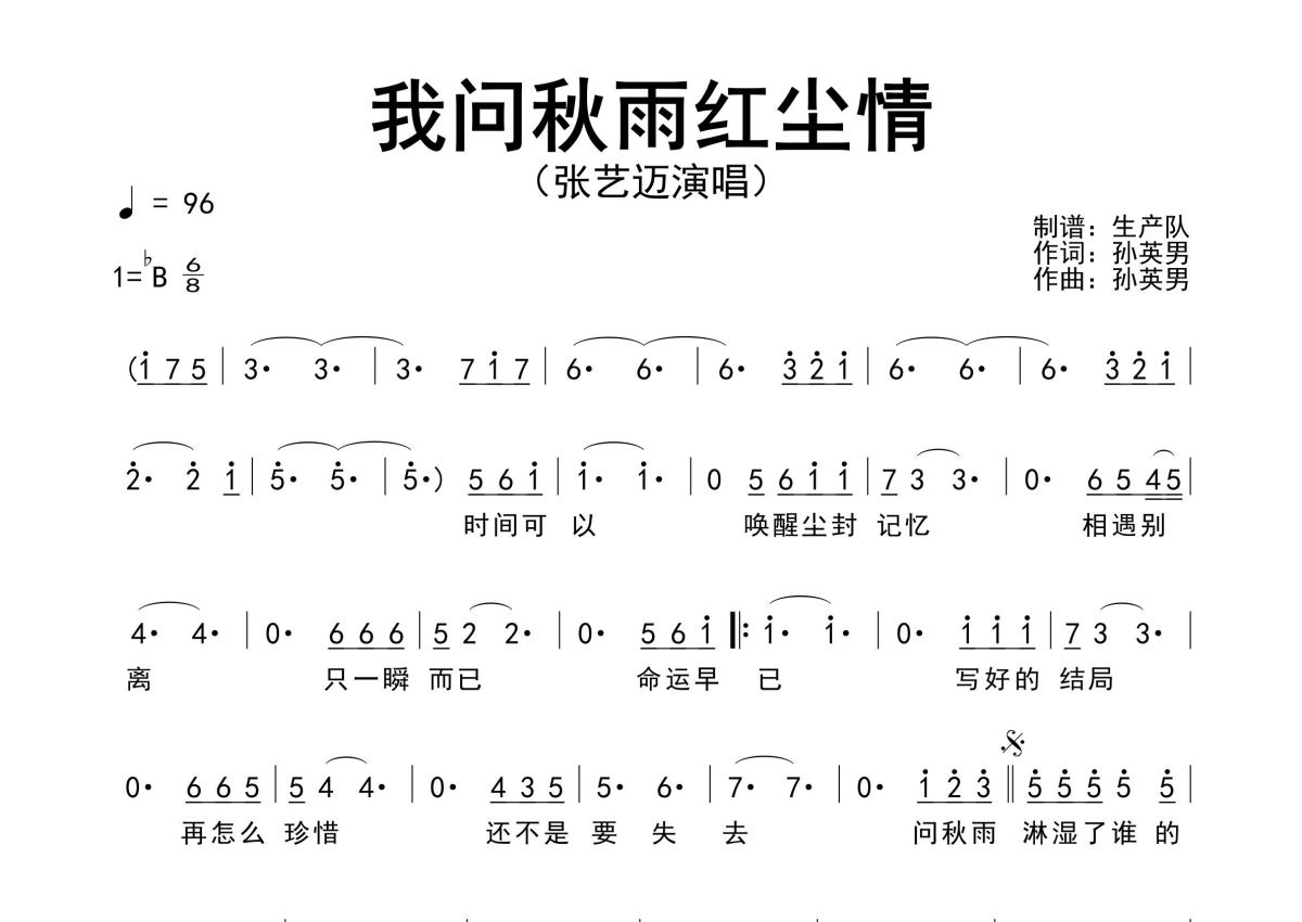 张艺迈《我问秋雨红尘情》简谱 - 原版简谱