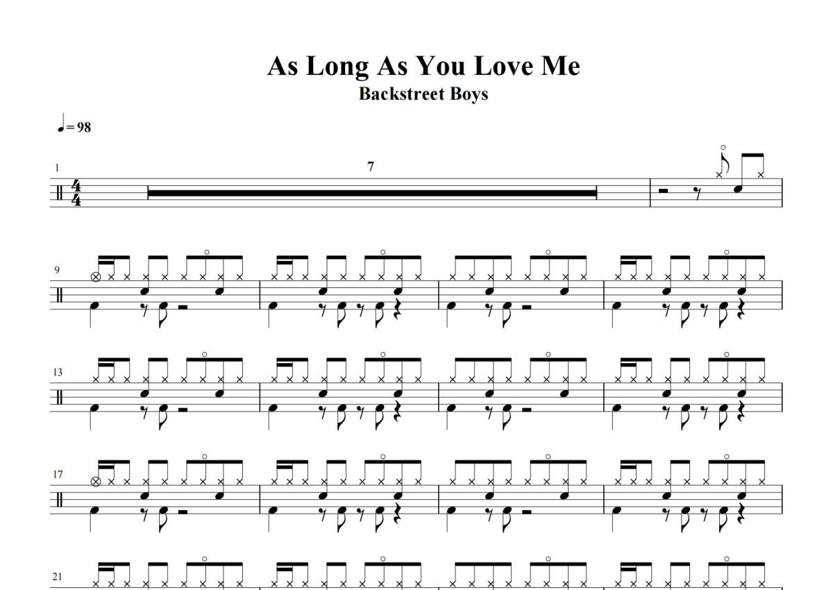 Backstreet Boys《As Long As You Love Me》架子鼓谱