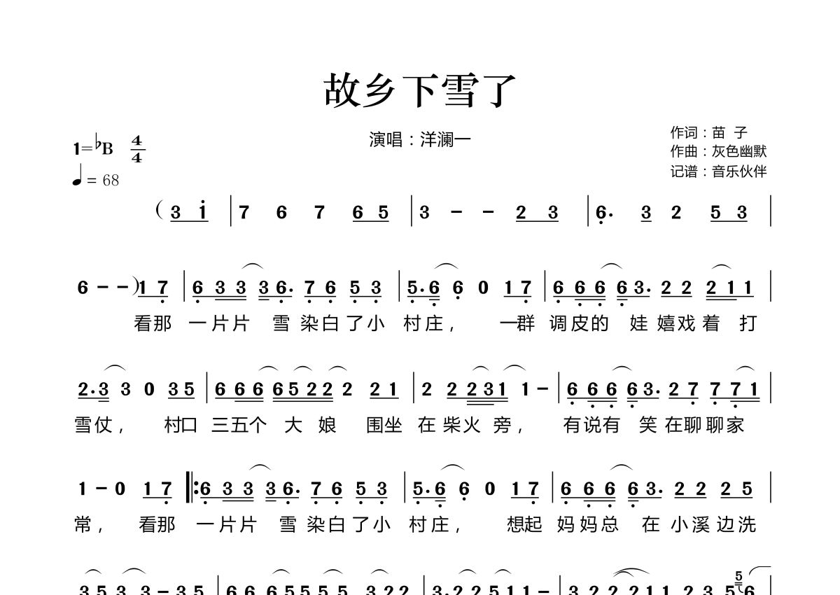 故乡下雪了简谱 - 洋澜一演唱
