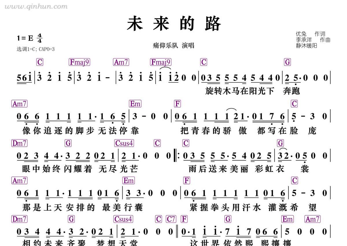 《未来的路》是痛仰乐队演唱的一首歌曲,和弦谱,拍号为4/4拍,这份简谱共有一张高清图谱,图谱由 @静沐暖阳 编配上传。
