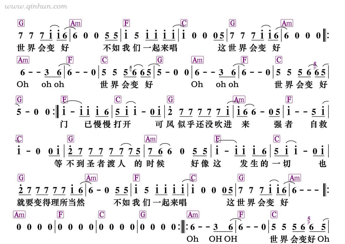 《世界会变好》是痛仰乐队演唱的一首歌曲,和弦谱,拍号为4/4拍,这份简谱共有两张高清图谱,图谱由 @静沐暖阳 编配上传。