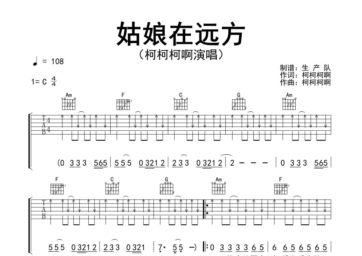 《姑娘在远方》是柯柯柯啊演唱的一首歌曲,精编完美版,拍号为4/4拍,歌曲速度为每分钟108拍,歌曲原调为C调,本吉他谱采用的是C调指法编配,演奏时不需要使用变调夹即为原调,这份吉他谱共有三张高清图谱,图谱由 @生产队 编配上传,图谱使用六线谱编配,包含吉他和弦指法、简谱以及歌词部分,使用这份姑娘在远方吉他谱,可以让你更加方便地掌握这首歌曲的弹唱技巧,快来尝试吧。柯柯柯啊演唱的歌曲《姑娘在远方》原版吉他谱,完整的前奏、间奏、尾奏solo编配,精编完美版,值得推荐!。