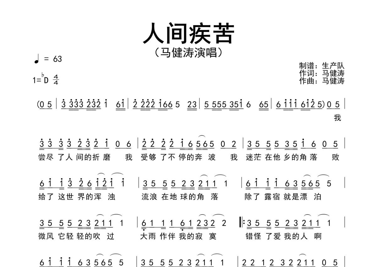 马健涛《人间疾苦》简谱 - 原版简谱