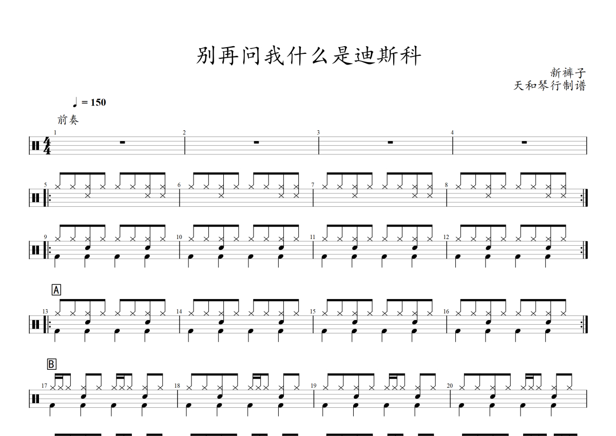 新裤子乐队《别再问我什么是迪斯科》架子鼓谱