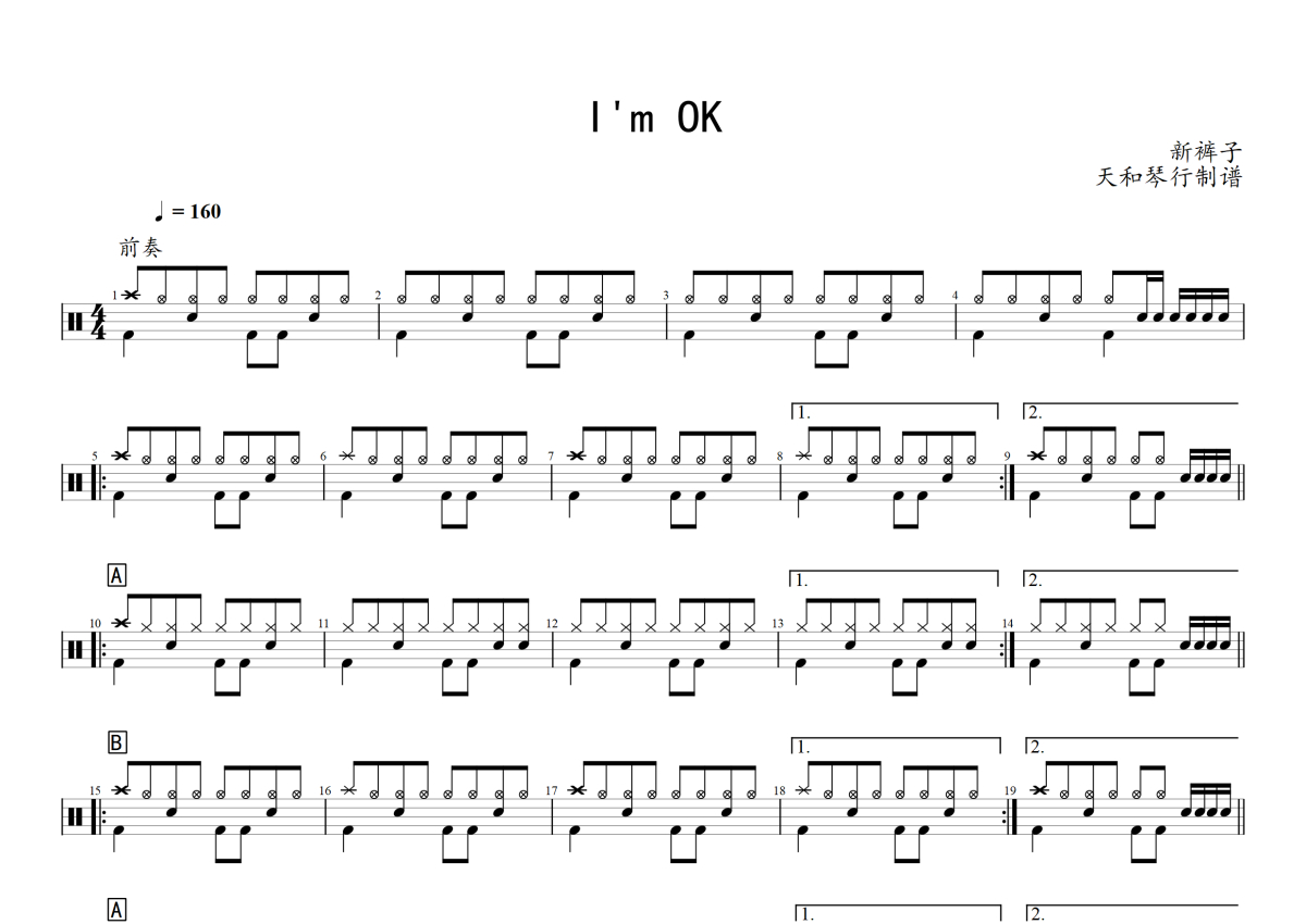 新裤子乐队《I'm OK》架子鼓谱