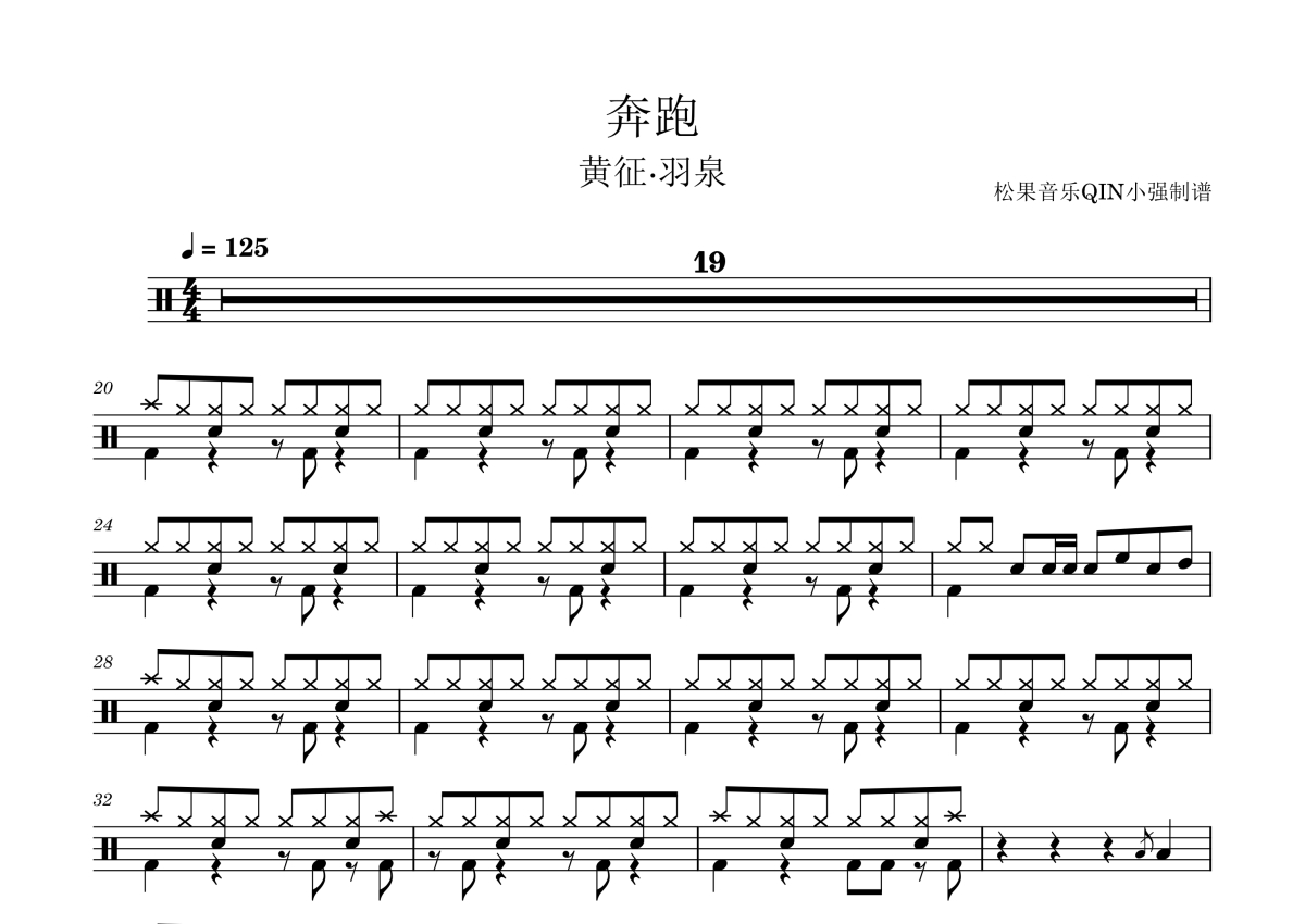 《奔跑》是黄征·羽泉演唱的一首歌曲,拍号为4/4拍,这份架子鼓谱共有两张高清图谱,图谱由 @松果音乐QIN小强 编配上传,图谱使用五线谱编配,使用这份奔跑架子鼓谱,你将能够轻松地敲打出这首黄征·羽泉的奔跑,快来尝试吧。《奔跑》是由羽泉、黄征填词谱曲,胡海泉编曲,羽泉、黄征演唱的一首歌曲,收入于黄征2003年3月1日发行的专辑《爱情诺曼底》。