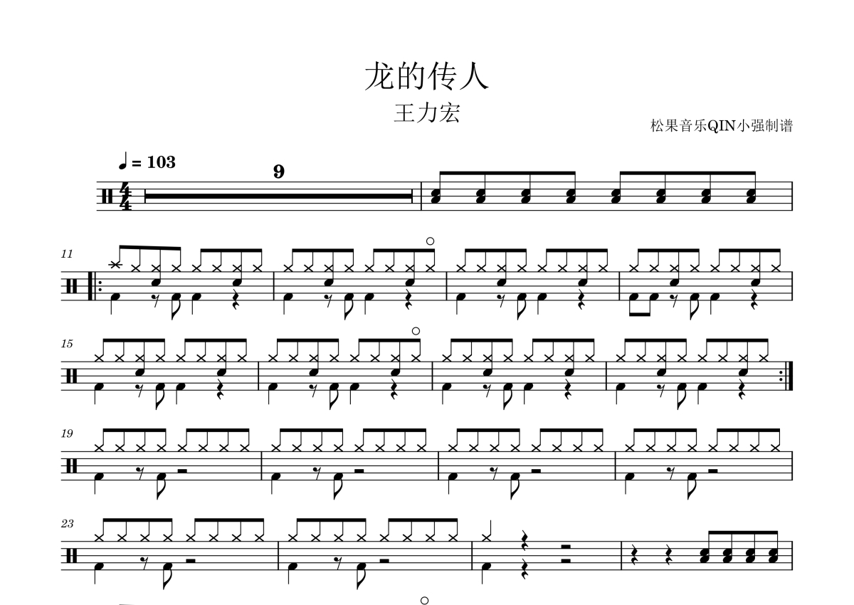 龙的传人架子鼓谱 - 王力宏演唱