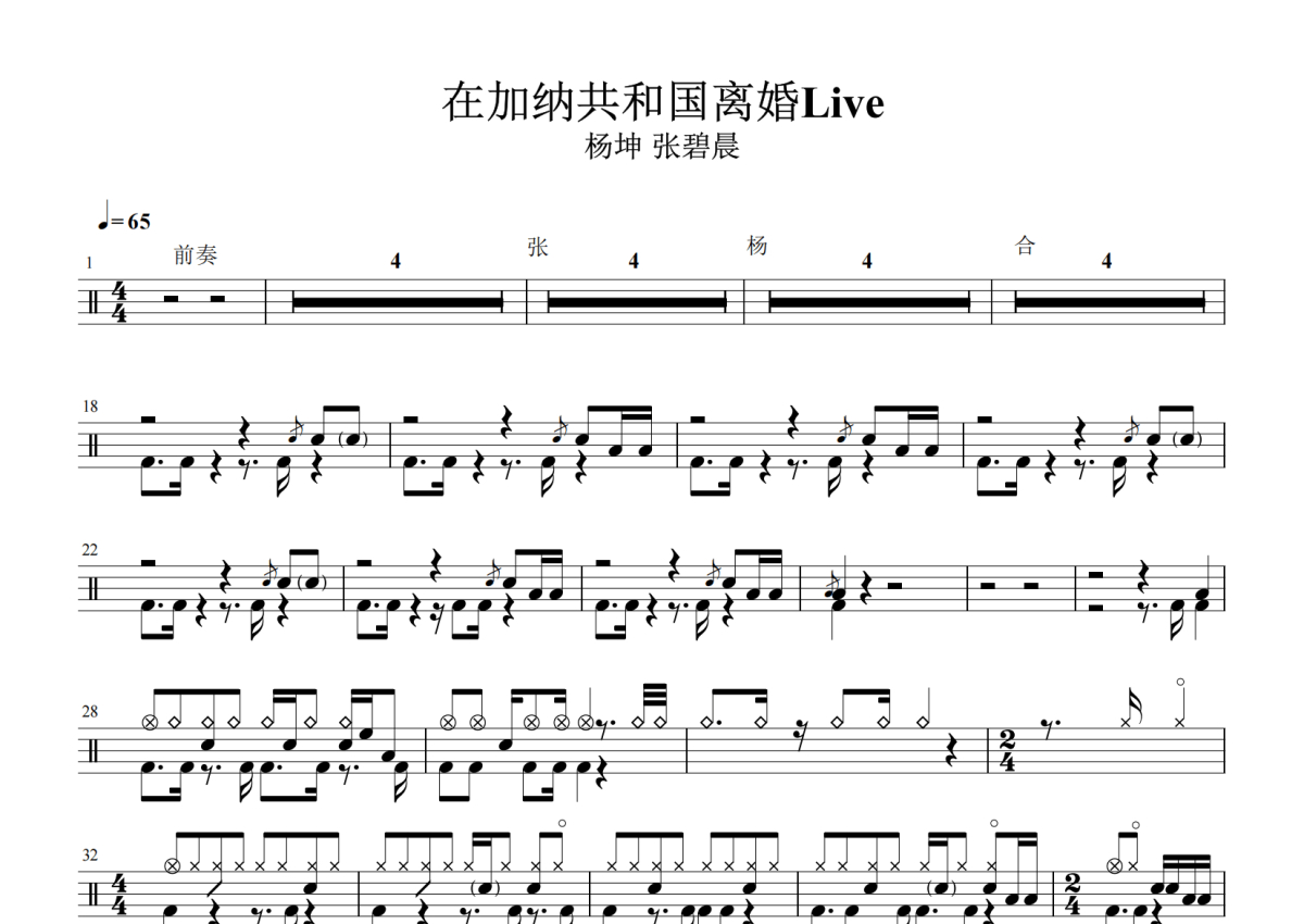 杨坤 张碧晨《在加纳共和国离婚》架子鼓谱 - Live