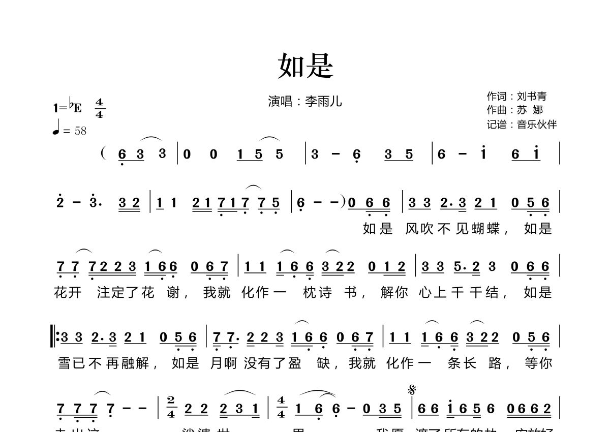 如是简谱 - 李雨儿演唱