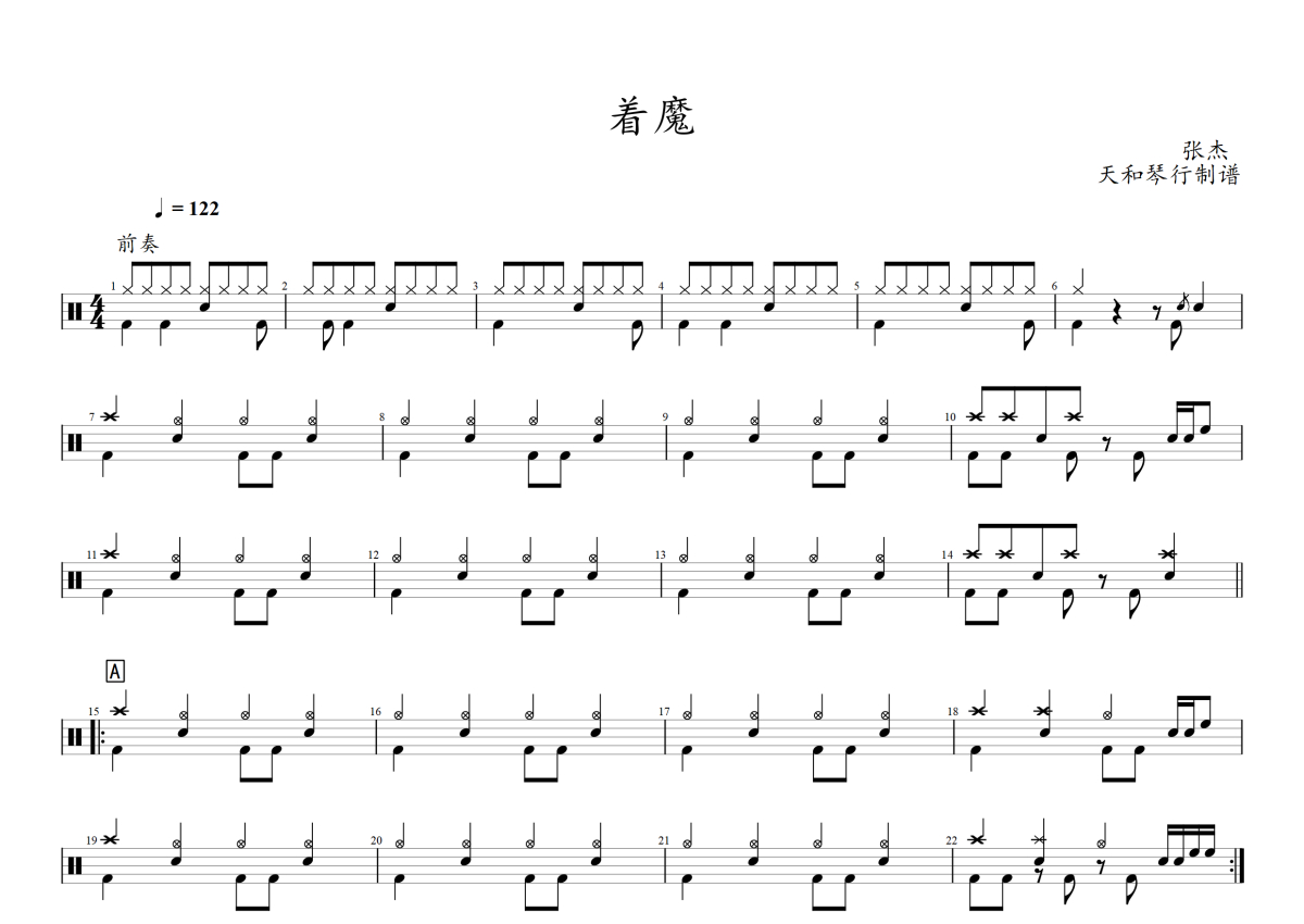 《着魔》是张杰演唱的一首歌曲,这份架子鼓谱共有两张高清图谱,图谱由 @音符喷血者 编配上传,图谱使用五线谱编配,使用这份着魔架子鼓谱,你将能够轻松地敲打出这首张杰的着魔,快来尝试吧。