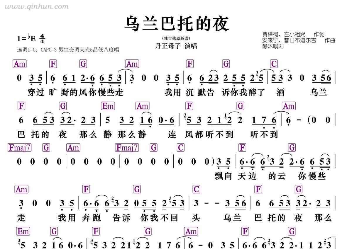 《乌兰巴托夜》是丹正母子演唱的一首歌曲,和弦谱,拍号为4/4拍,这份简谱共有一张高清图谱,图谱由 @静沐暖阳 编配上传。