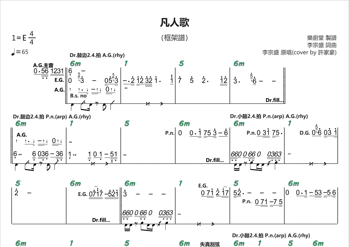 许家豪《凡人歌》乐队总谱 - 框架谱