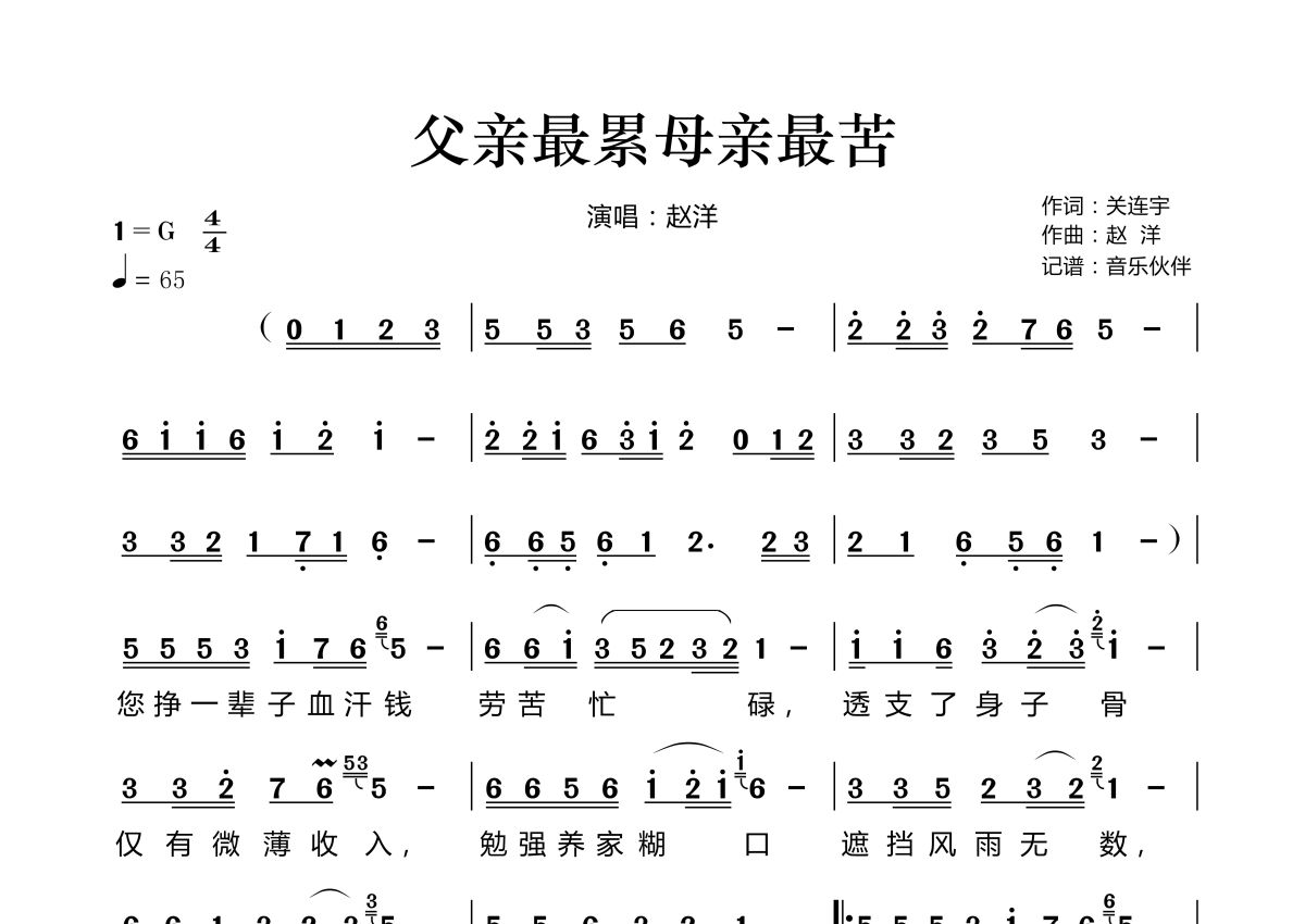 父亲最累母亲最苦简谱 - 赵洋演唱