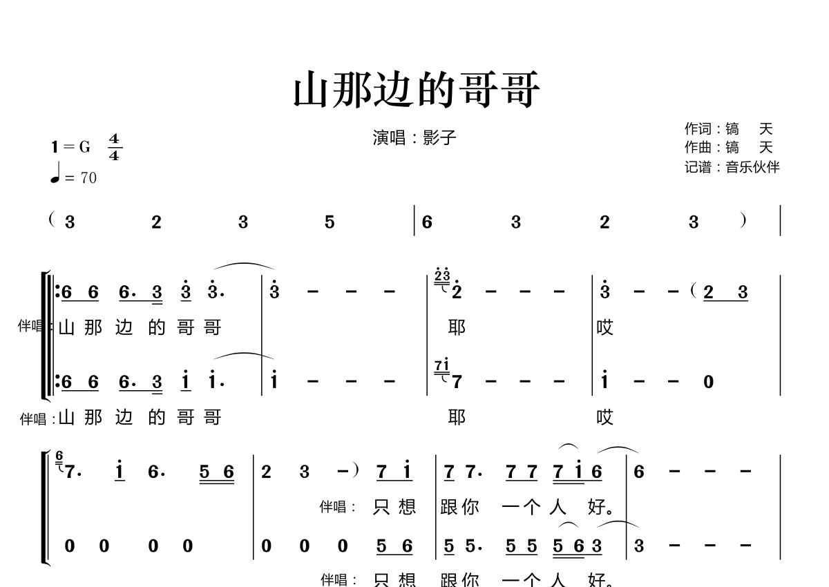 山那边的哥哥简谱 - 影子演唱