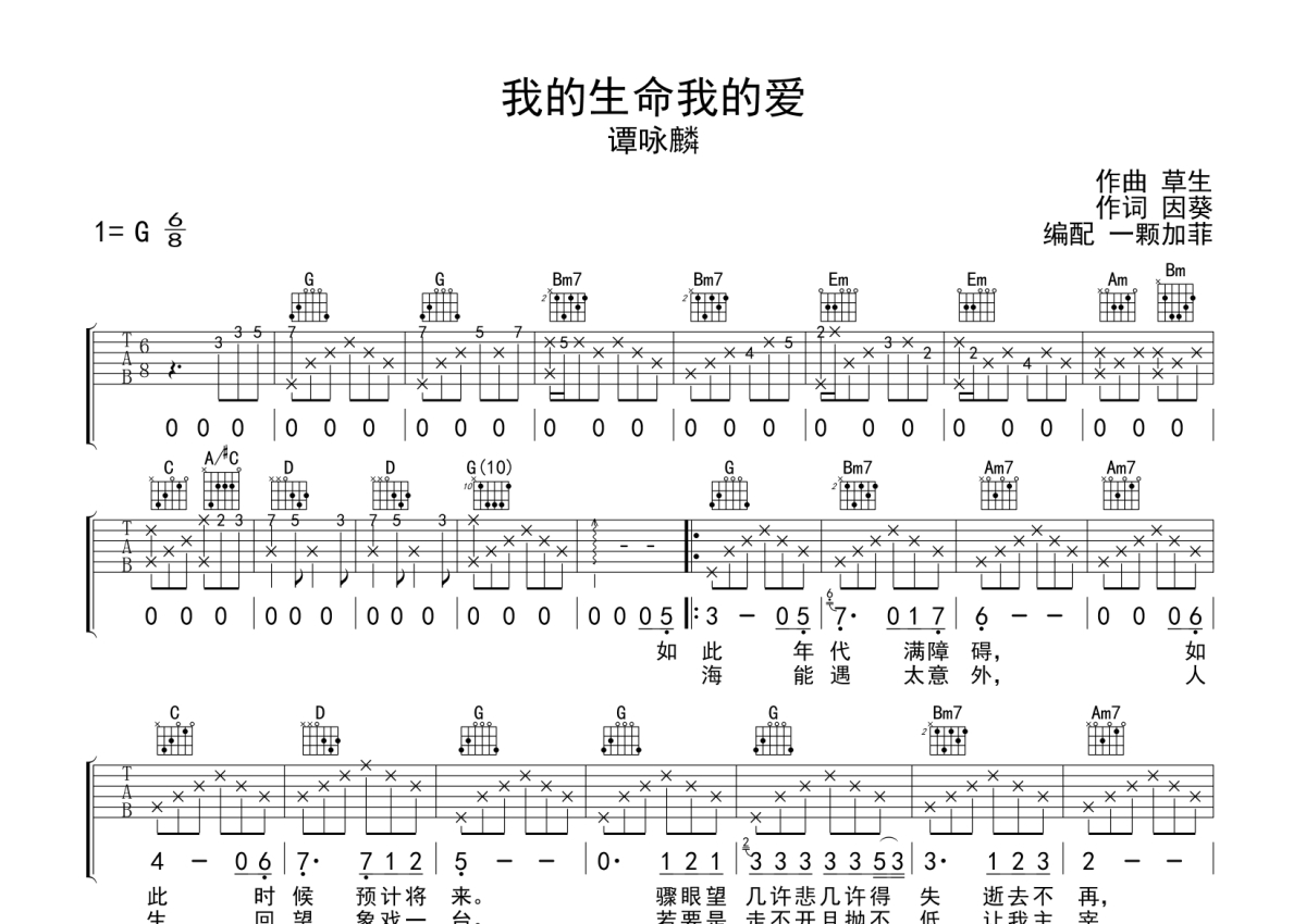 谭咏麟《我的生命我的爱》吉他谱 - G调弹唱六线谱