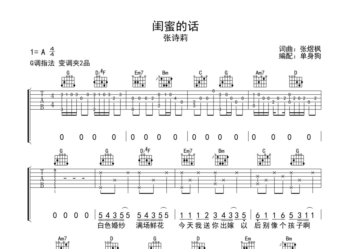 张诗莉《闺蜜的话》吉他谱 - G调弹唱六线谱