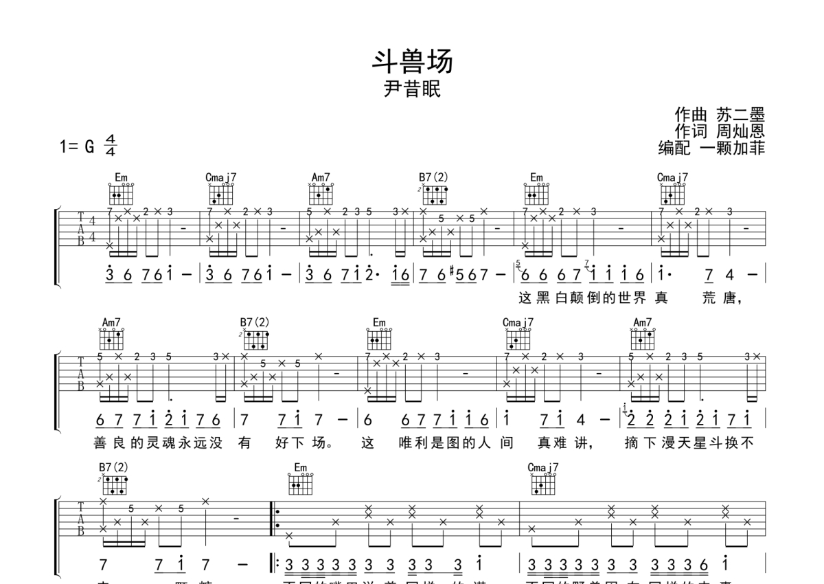 尹昔眠《斗兽场》吉他谱 - G调弹唱六线谱