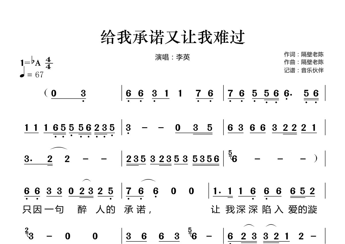 给我承诺又让我难过简谱 - 李英演唱