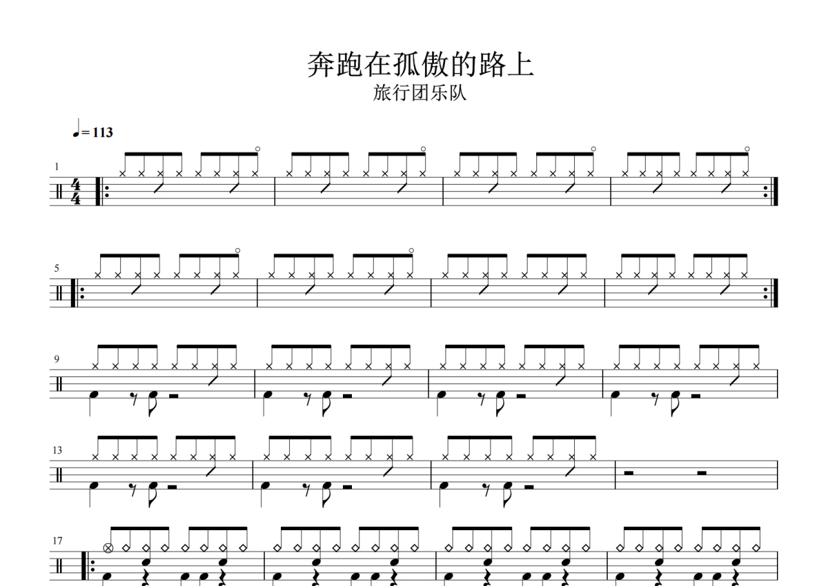 旅行团乐队《奔跑在孤傲的路上》架子鼓谱
