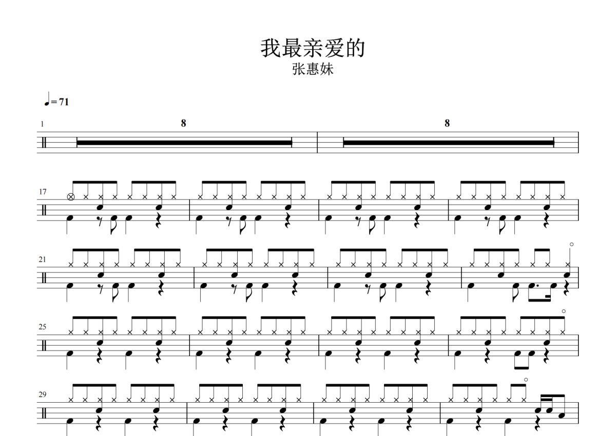 张惠妹《我最亲爱的》架子鼓谱